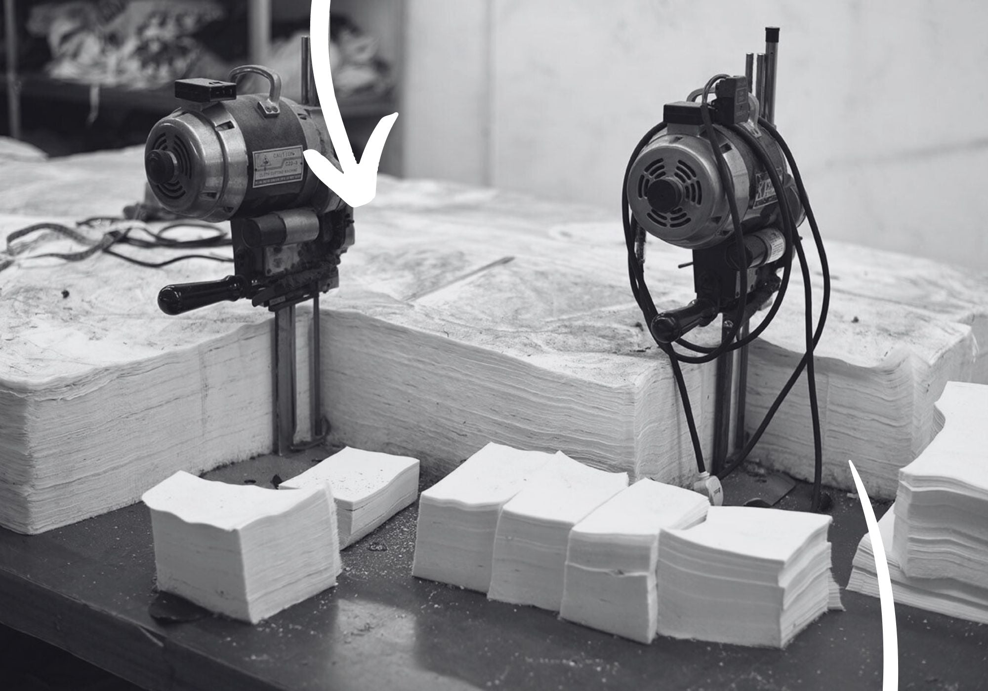 Les couturiers de l'atelier, renommé pour son expertise depuis plus de 25 ans, parcourent ensemble chaque étape du processus de fabrication, donnant ainsi vie à chaque pièce de tissu.