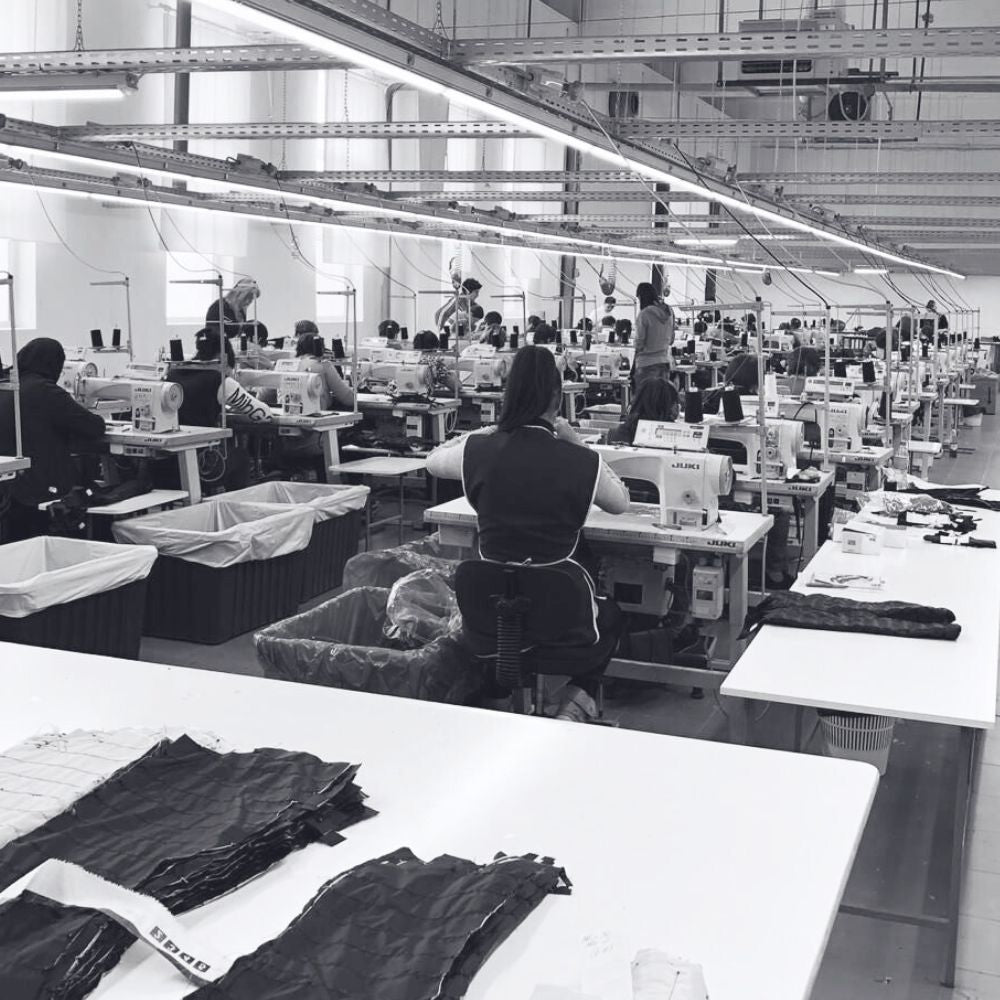 Chaque pièce est ensuite assemblée par des couturières expertes, qui veillent à chaque détail : coutures renforcées, bandes de propreté impeccables, ourlets réguliers.
